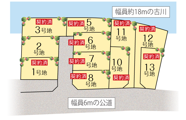 区画は全11区画あり、そのほとんどが南向きで陽当たり良好となっており、